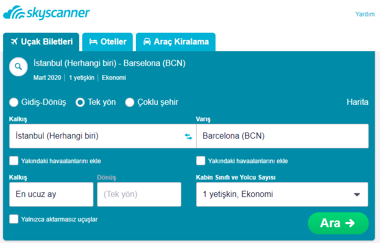 Not: Skyscanner’ın Otel ve Araç arama özellikleri de var ama aşağıda belirteceğimiz alternatifleri varken, bu kısımları çok faydalı bulmuyoruz.