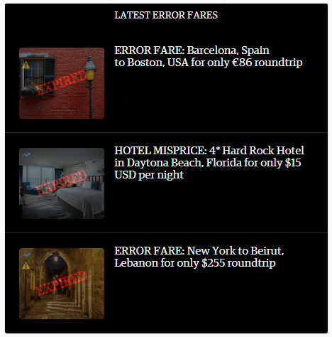 Bu site, planlama yaparken kullanabileceğiniz bir araçtan çok, burada denk geldiğiniz fırsatlar üzerinden plan yapabileceğiniz bir yer. Sitede yer alan uçak bileti fırsatları genellikle kıtalar arası oluyor. Bir de “Error Fare” dedikleri bir olayları var ki, henüz denemedik ama kulağa çok cazip gelmiyor değil. Şöyle ki; fiyatların hatalı bir şekilde çok düşük olduğu seçenekleri bulup yayınlıyorlar. Sitenin adına aldanmayın bu arada, aşağıdaki ekran görüntüsünde de olduğu gibi çılgın otel fiyatları bulabiliyorlar ama bu fırsatlar çok çabuk tükeniyor doğal olarak.