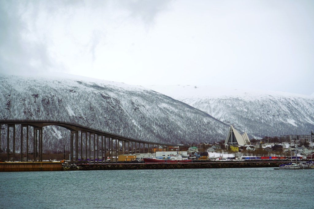 Şehir merkezinden karşıya geçen bu köprü hem fotoğraf çekmek için güzel bir nokta, hem de Arctic Cathedral (Arktik Katedrali)‘ne ulaşmanın yolu. Katedralin üçgen formu, cam vitrayları ve karla kaplı dağlara karşı duruşu gerçekten etkileyici. Giriş ücretli ama dışarıdan da gayet güzel gözüküyor. Hem gündüz hem gece manzarası çok hoş.